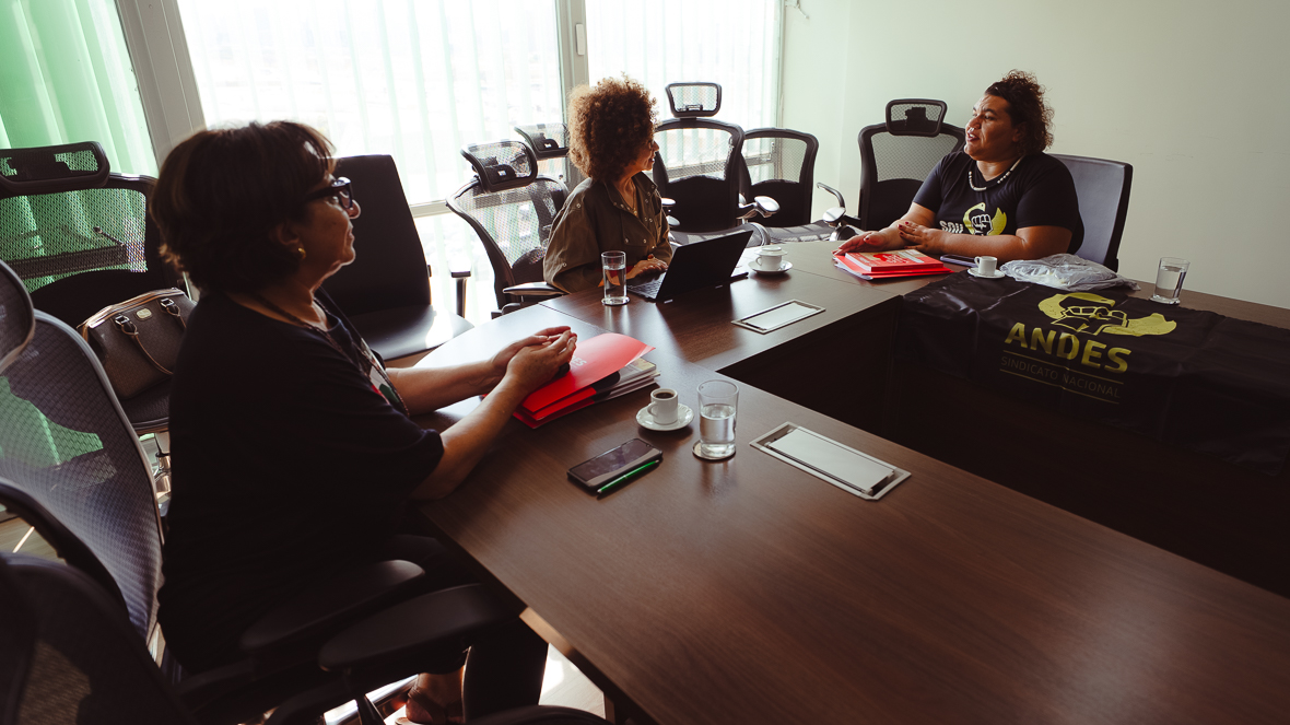 Dia 1 de agosto, o ANDES-SN marcou presença no ato em defesa da soberania nacional e contra o "tarifaço" de Donald Trump, em frente à Embaixada dos EUA, em Brasília (DF).