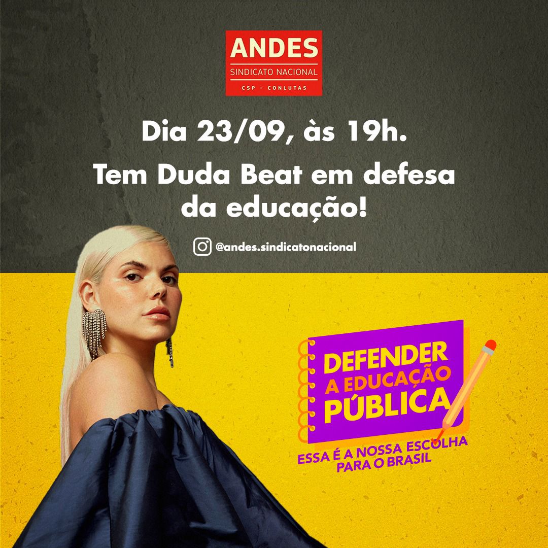 ANDES-SN lança campanha em defesa da Educação Pública com show-live de Duda Beat