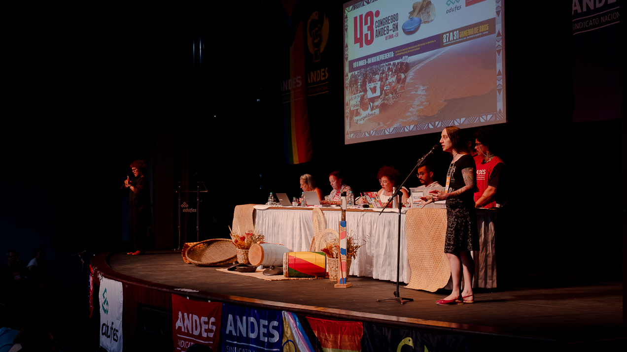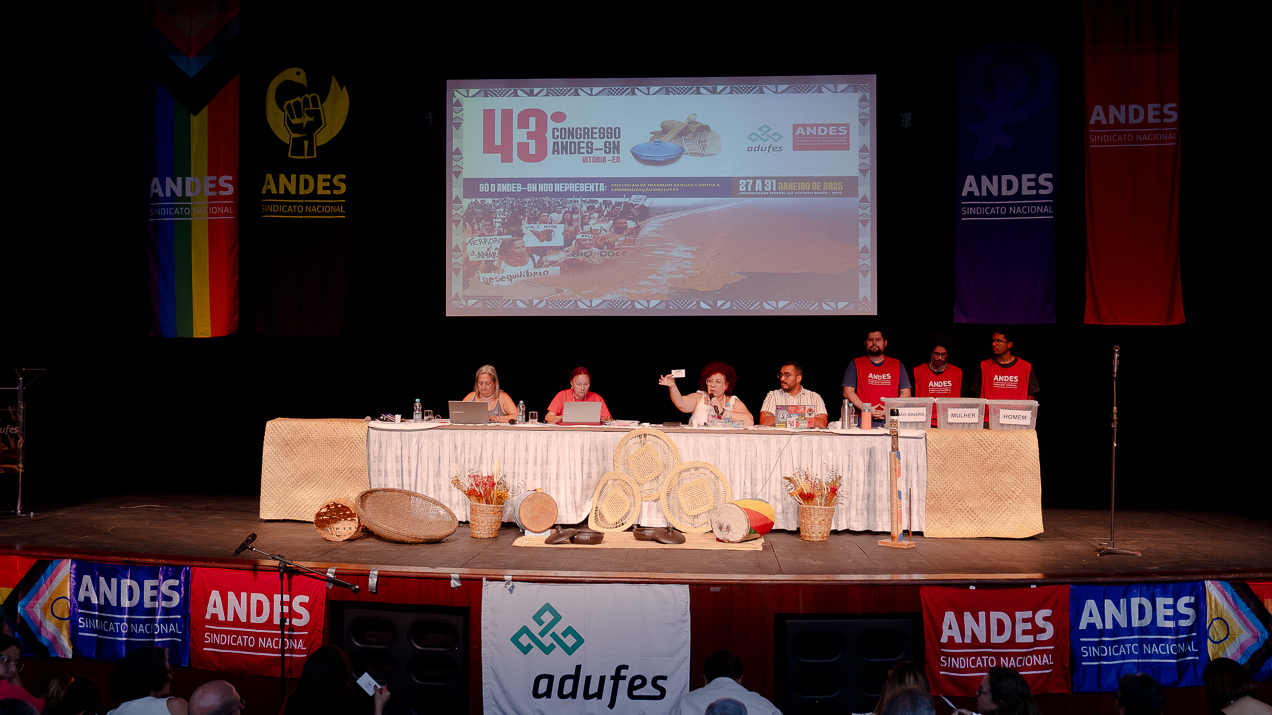 A primeira plenária temática do 43º Congresso do ANDES-SN, realizada na tarde e noite desta segunda-feira (27), debateu a conjuntura e o movimento docente. O evento acontece na Universidade Federal do Espírito Santo (Ufes) até sexta-feira (31) e reúne mais de 600 docentes de todo o país.
