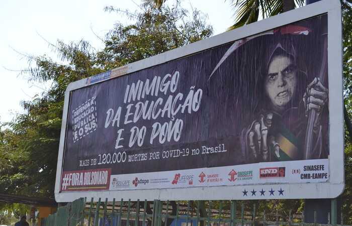 Em agosto do ano passado, Erika Suruagy, presidenta da Aduferpe SSind. na época, foi intimada a depor na sede da Polícia Federal (PF) sobre a campanha de outdoors chamada “O senhor da morte chefiando o país”, em que associava o presidente Bolsonaro ao número exorbitante de mortes por Covid-19 no Brasil - à época ainda eram 120 mil. O inquérito, instaurado pela PF, por requisição do Ministro da Justiça e Segurança Pública, apurou eventuais crimes contra a honra do presidente da República.