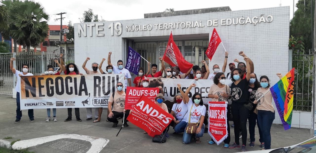 Pela tarde, representantes das seções sindicais do ANDES-SN protocolaram na Secretaria de Educação do Estado da Bahia, pela décima vez, um pedido de reabertura do diálogo com o governo Rui Costa (PT). Há mais de 800 dias, a mesa de negociação com o movimento docente foi interrompida. A categoria havia enviado, ainda na semana passada, outro ofício para o governo, mas não obteve retorno. A mesa de negociação foi acordada durante a greve de 2019 entre docentes e governo do estado e foi uma das condições para a suspensão do movimento grevista.