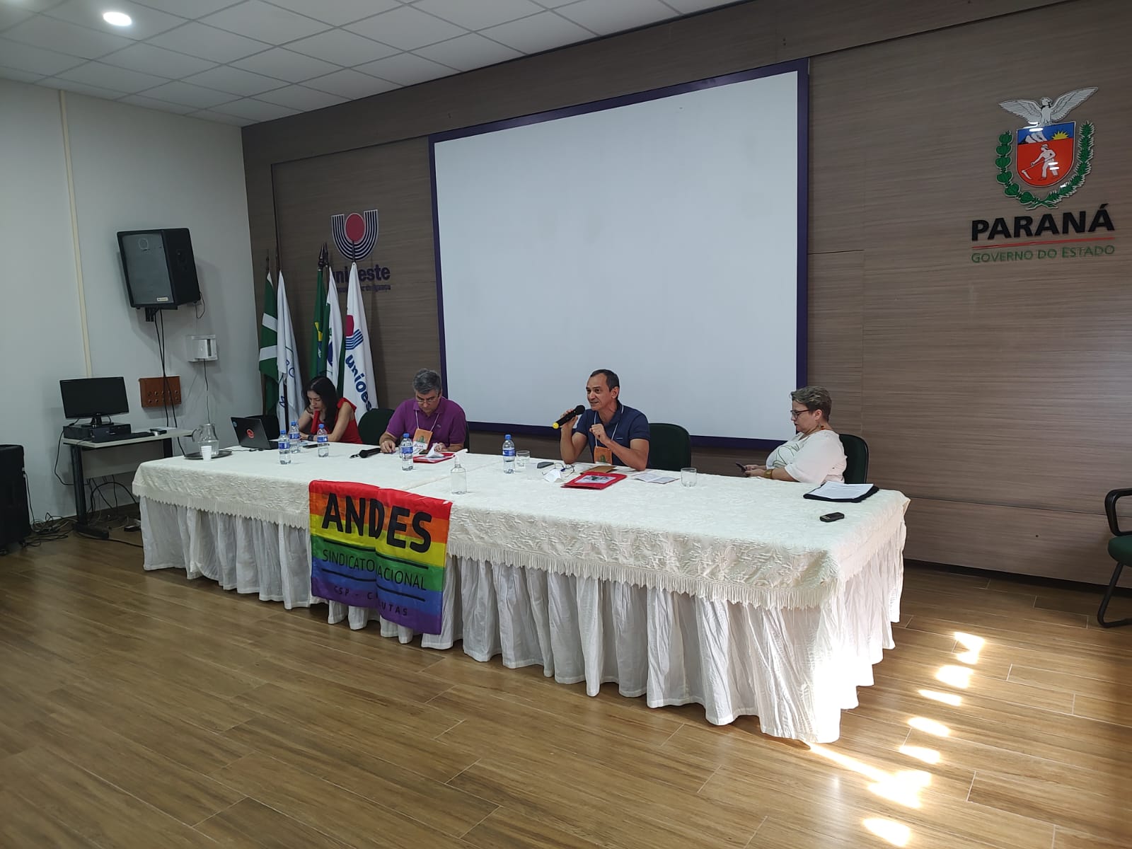 A terceira mesa teve como tema "Universidade, condições de trabalho e lutas sociais na fronteira", com Andreia Moassab (Unila), Susana Cavalheiro de Jesus (Unipampa) e José Sávio (UFAC e diretor do ANDES-SN). As explanações abordaram as várias particularidades, desafios e problemas das universidades de fronteira e multicampi.