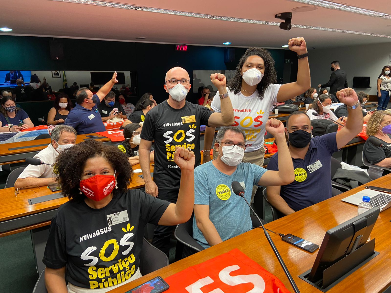 Durante todo o dia, assim como desde que foi anunciado que o primeiro substitutivo à PEC 32 seria votado, servidores e servidoras realizaram manifestação em frente ao anexo 2 da Câmara dos Deputados. Além dos protestos em Brasília (DF), manifestantes realizaram atos nos estados e também intensa mobilização nas redes sociais.