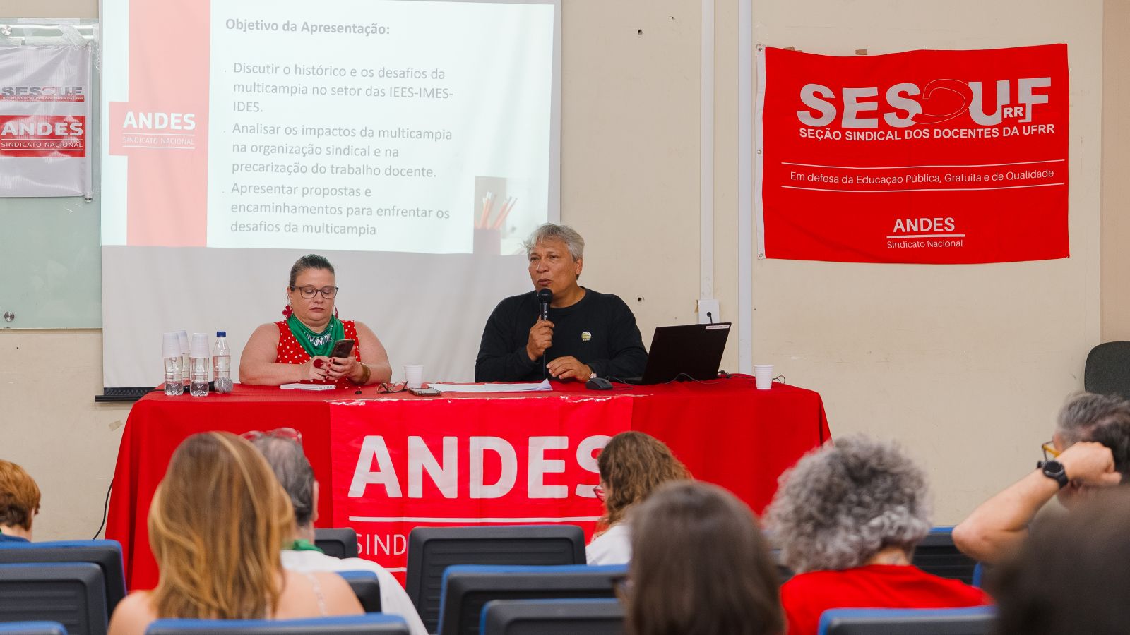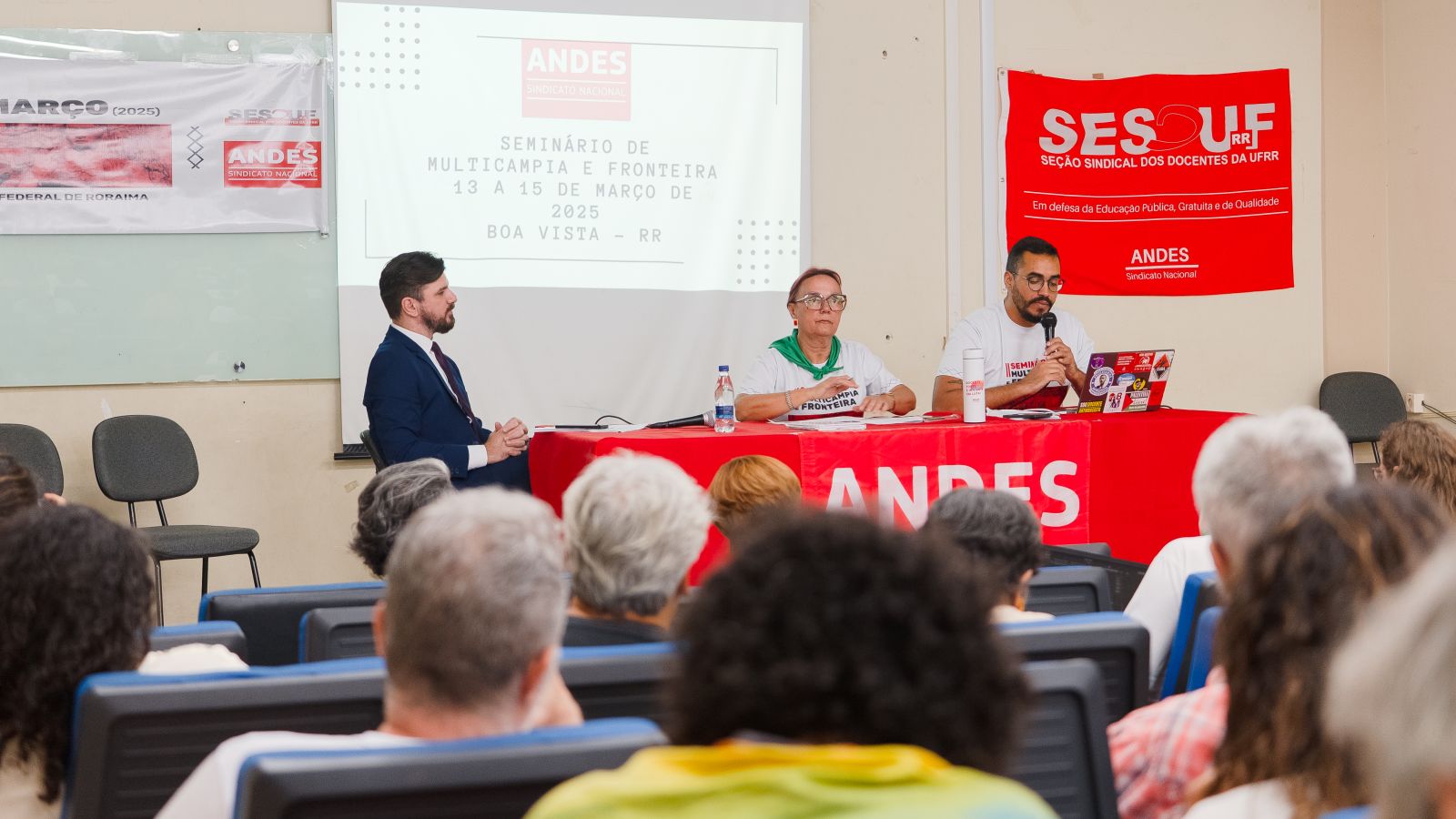 O II Seminário de Multicampia e Fronteira do ANDES-SN segue com programação até sábado (15) em diferentes campi da UFRR. A proposta é descentralizar o local de realização das atividades nos próximos dias para que docentes conheçam de perto as dificuldades enfrentadas pela comunidade acadêmica nessas regiões.