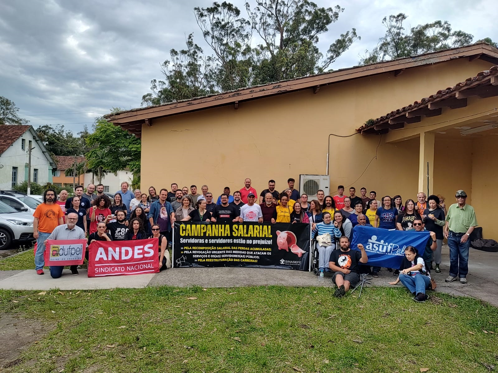 As e os docentes da Universidade Federal de Pelotas (Ufpel), no Rio Grande do Sul, paralisaram as suas atividades e realizaram panfletagem na quarta (8) no campus Anglo da universidade. À tarde, participaram de um almoço no campus Visconde da Graça, organizado pela Associação dos Docentes da Ufpel e demais entidades sindicais e estudantis. As atividades fizeram parte das mobilizações que ocorreram no país por valorização das servidoras e dos servidores. Já em Santa Maria, ocorreu na tarde de terça (7), um debate sobre encargos docentes, no auditório do campus central da Universidade Federal de Santa Maria (Ufsm). A atividade foi organizada pela Seção Sindical dos Docentes da Ufsm (Sedufsm), com a parceria do Sinasefe local, e fez parte da agenda de mobilização aprovada na última assembleia da categoria.