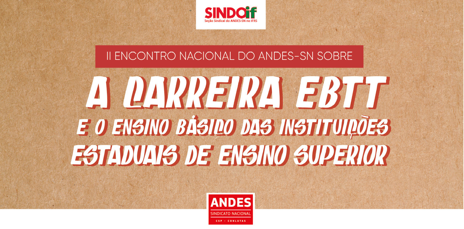 O ANDES-SN promove nos dias 01,02 e 03 de novembro, o II Encontro Nacional sobre a Carreira do Ensino Básico, Técnico e Tecnológico (EBTT) e Ensino Básico das Instituições Estaduais de Ensino Superior (IEES)....